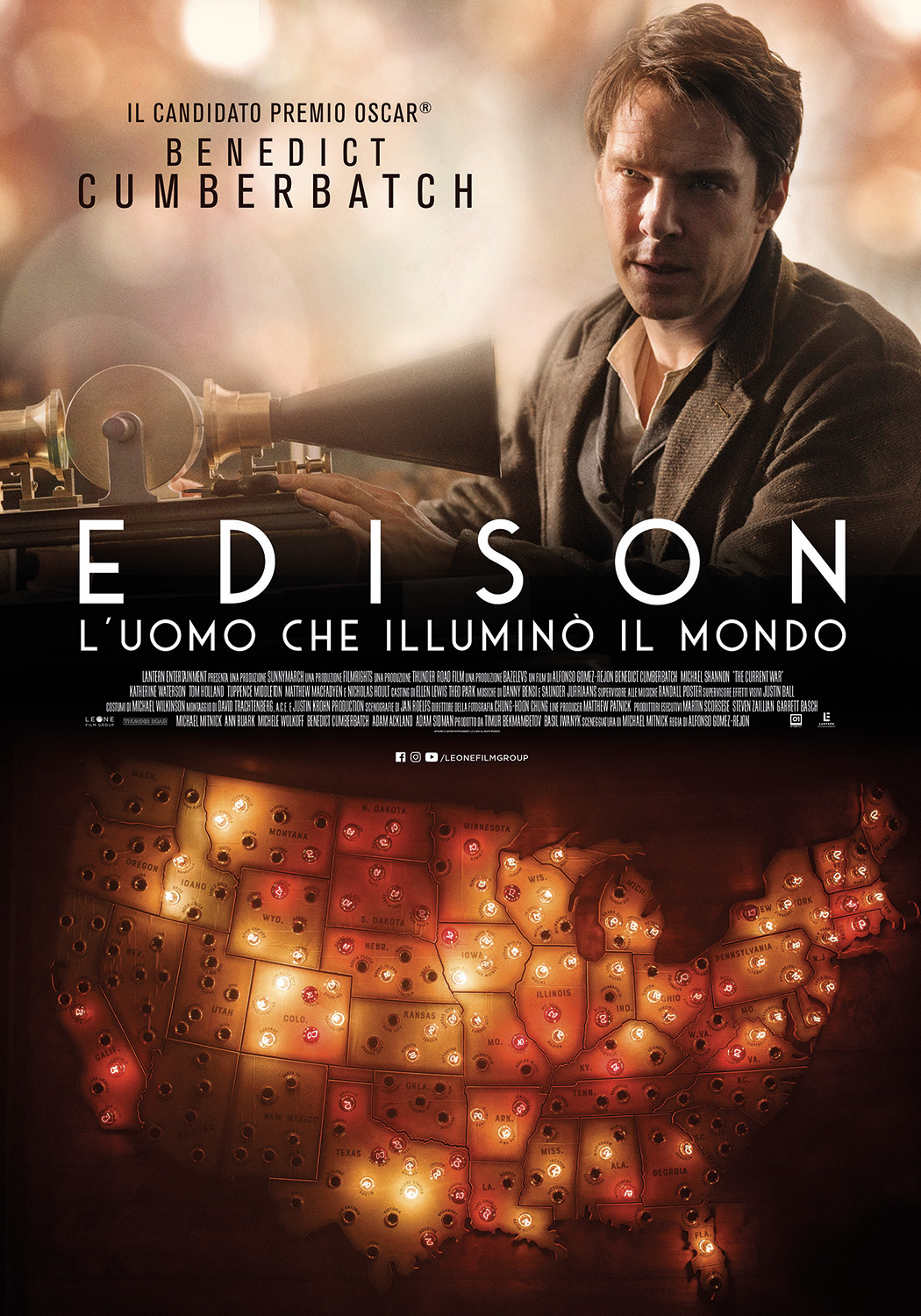 Benedict Cumberbatch, nei panni di Thomas Edison, e Michael Shannon in quelli di George Westinghouse sono i protagonisti di Edison – L’uomo che illuminò il mondo. La storia della competizione epica e spietata tra i due più grandi inventori dell’era industriale per stabilire quale dei due sistemi elettrici avrebbe dominato il nuovo secolo. Sostenuto da J.P. Morgan, Edison abbaglia il mondo illuminando Manhattan, ma Westinghouse, aiutato da Nikola Tesla, riuscì a individuare alcuni terribili difetti nel sistema a corrente diretta di Edison. Scatenando una vera “guerra di correnti” , Westinghouse e Tesla puntano tutto sul sistema a corrente alternata, una scelta rischiosa e pericolosa.