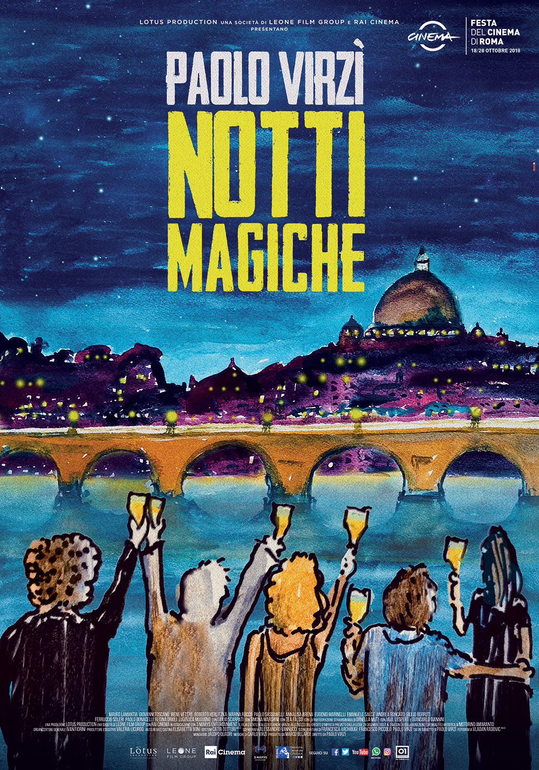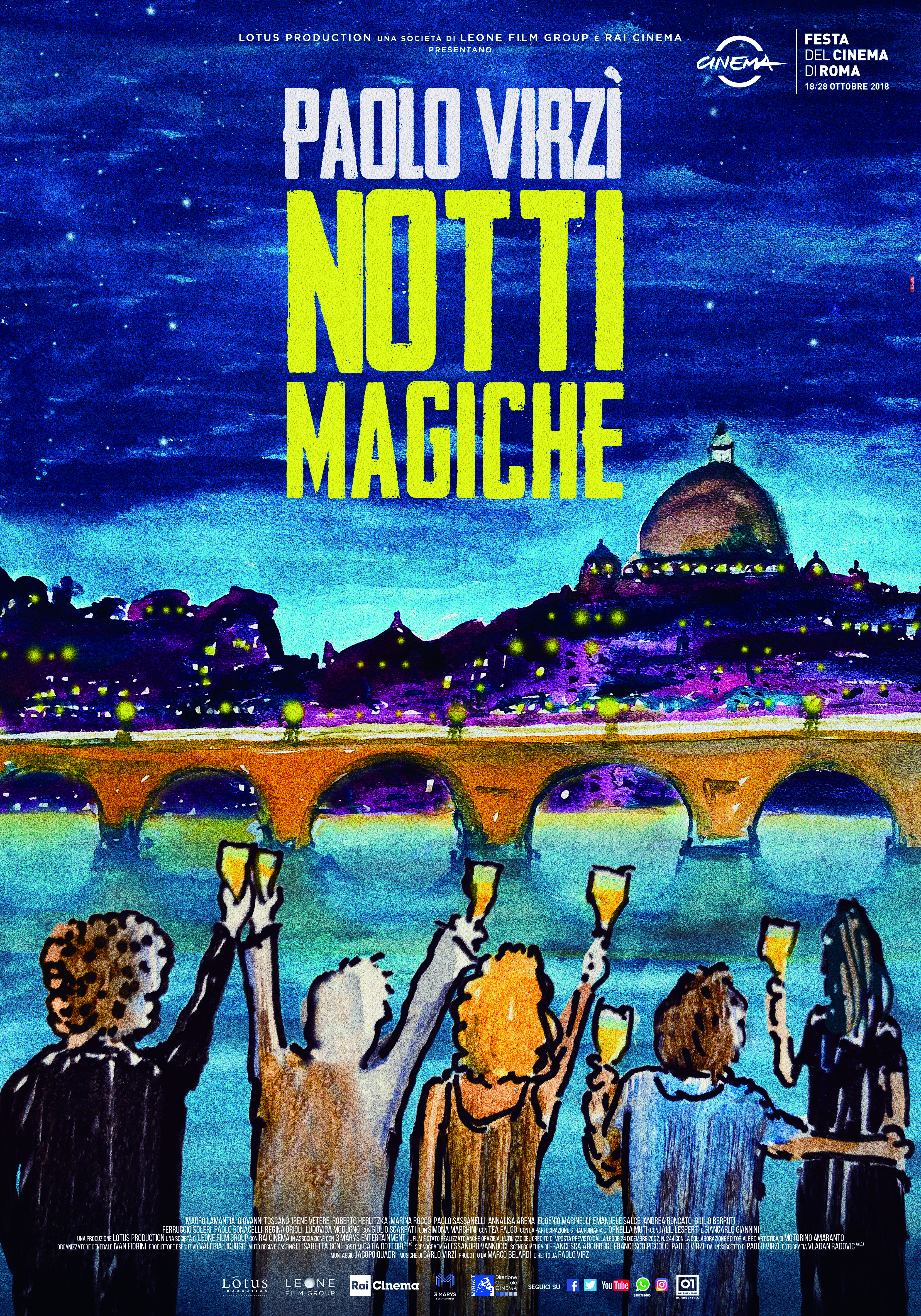Italia '90: la notte in cui la Nazionale viene eliminata ai rigori dall’Argentina, un noto produttore cinematografico viene trovato morto nelle acque del Tevere. I principali sospettati dell’omicidio sono tre giovani aspiranti sceneggiatori, chiamati a ripercorrere la loro versione al Comando dei Carabinieri. Notti Magiche è il racconto della loro...